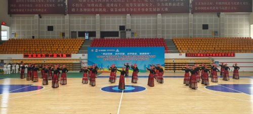 健步走结束后,群众健身展演。空竹协会展演了《空竹》,广场舞协会展演了广场舞《花开中国》,健身气功协会展演了健身气功《八段锦》、健身秧歌协会展演了《第八套健身秧歌》、春风健身队展演了健身气功《太极养生杖》、红韵旗袍艺术中心展演了斗笠秀《踏古》、万达广场健身队和下口健身队展演了柔乐球《没有共产党就没有新中国》。精彩的演出,为本次活动画上了圆满的句号。