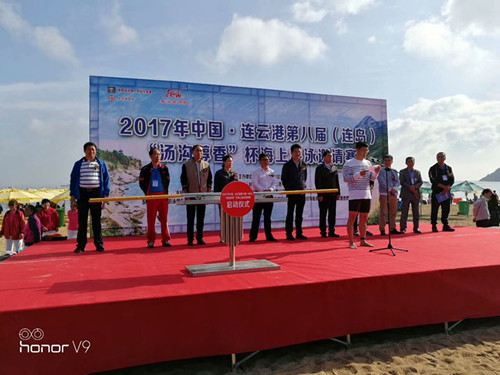 10月7日,2017年中国连云港第八届连岛·海上游泳邀请赛在连岛景区大沙湾举行.本次赛事由连云港市体育总会主办,连云区文体旅游局、连云港市游泳协会承办,以及南京力然体育有限公司、连云港龙舟协会联合协办。连云港市市体育局局长张斌、连云区政府常务副区长胡传宏、连云区政府副区长嵇轶等领导出席了开幕式。